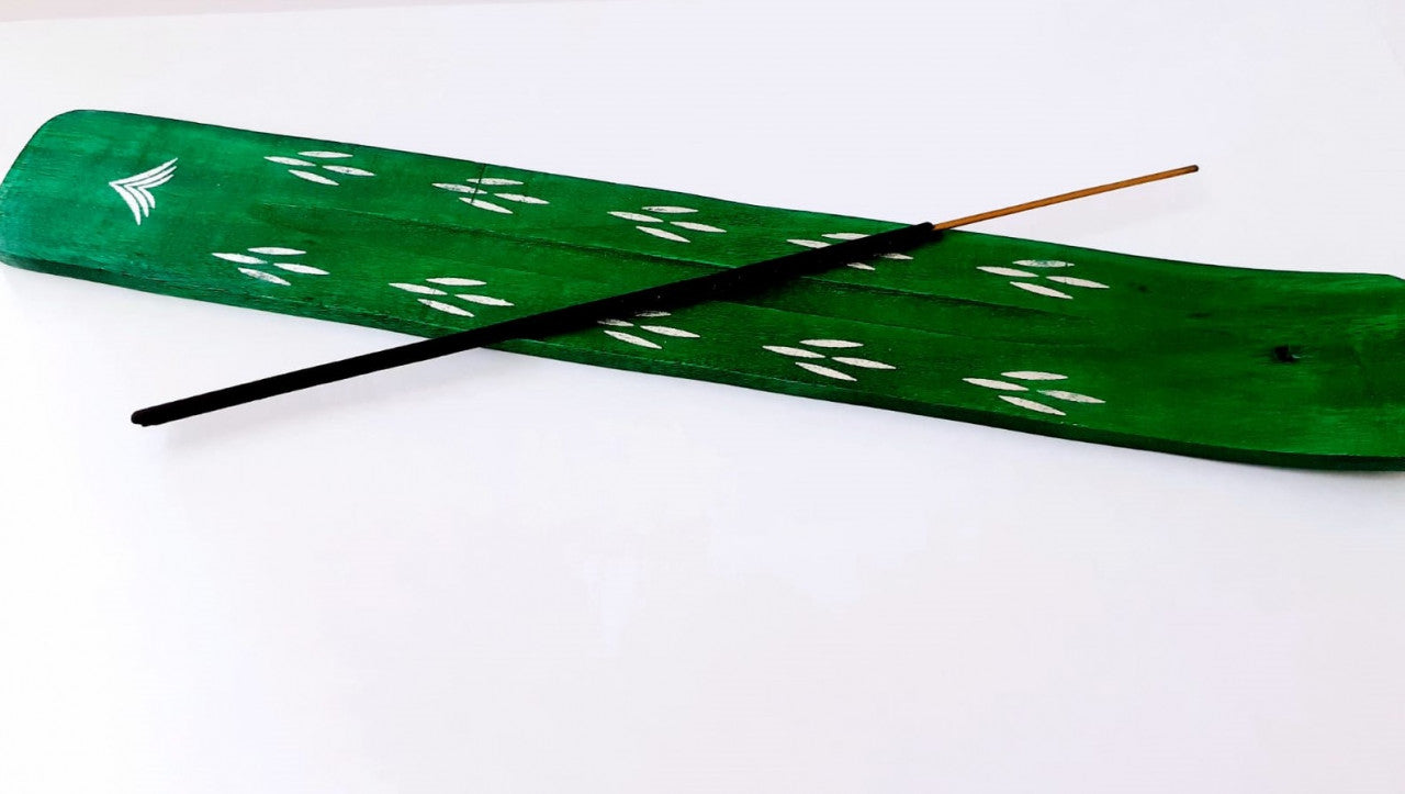 Suport din lemn pentru betisoare parfumate, fabricat in India, perfect pentru arderea betisoarelor parfumate, cu design special. Pe mijlocul suportului este prevazuta o adancitura destinata colectarii cenusii rezultate ca urmare a arderii betisoarelor parfumate.